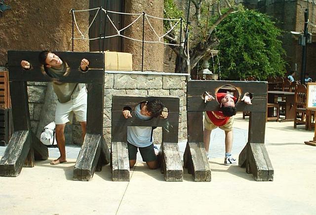 Jon, Vash y Mayo (de izqda a dcha) tras ser apresados por pasar cuando no debian pasar aunque les hubieran dicho que pasaran en una de las atracciones... o algo asi xD