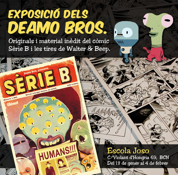 Glénat) y de la tira Walter & Beep que se publica en las páginas de la revista El Jueves. La muestra está conformada por veinte originales de Serie B acompañados de sus respectivas reproduciones -tal cual pueden verse en el cómic terminado- y también de reproducciones de la tira Walter & Beep. Todo lo podréis disfrutar pasando por el número 69 la calle Violant d’Hongría de Barcelona.