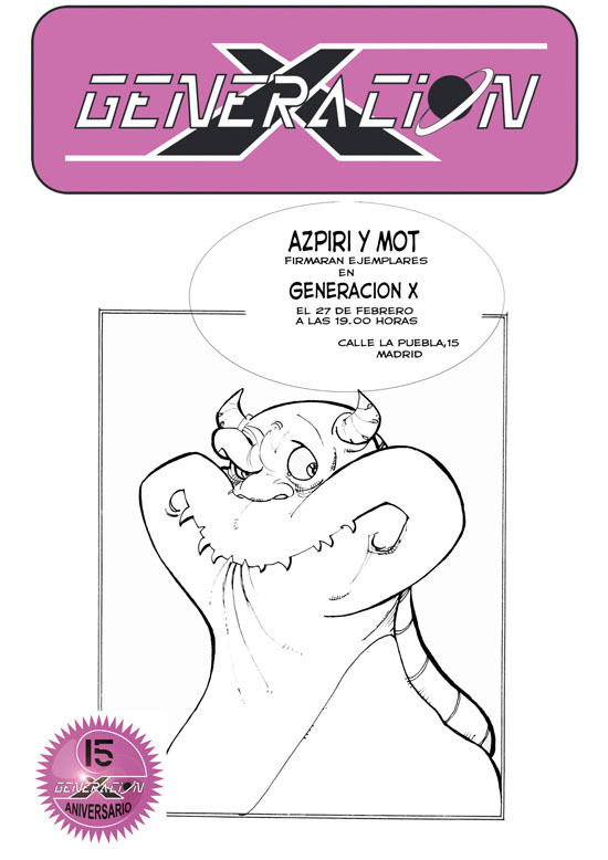 Con motivo el 15 aniversario de Generación X, el 27 de Febrero Azpiri estará firmando ejemplares de su obra en la tienda de Generación X de Puebla 15 a partir de las 19:00.
