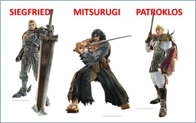 Siegfried, Mitshurugi, Patroklos, Pyrrha, Ivy o Natsu, en su versión de SOULCALIBUR V.