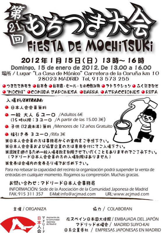 El Mochitsuki es una ceremonia japonesa de año nuevo que consiste en preparar y después comer los mochi, pastelitos de arroz. En Madrid se celebra el domingo 15 de Enero de 13:00 a 16:00 horas, en