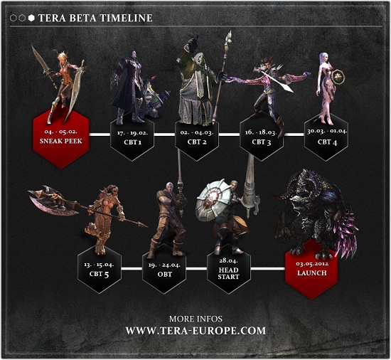 El día 4 de febrero de 2012, los jugadores podrán sumergirse de lleno en el mundo de TERA. Aquellos que tengan una clave de acceso especial sentirán una descarga de adrenalina gracias a su sistema combate de acción real (true action combat). Las claves podrán obtenerse en diferentes webs asociadas en Europa, así como a través de la página web oficial de la comunidad de TERA. Este primer vistazo a TERA finalizará el día 5 de febrero y las cuentas se eliminarán para llevar a cabo los preparativos para la primera de las numerosas fases de betas cerradas. Puedes registrarte en http://account.tera-europe.com/ ![]() |