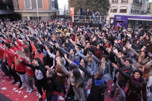 Microsoft. Animados por su pasión por la música y el ritmo, cientos de parejas y amigos se congregaron en la céntrica plaza madrileña que se consolida, por tercer año consecutivo, como el epicentro de la mayor celebración de