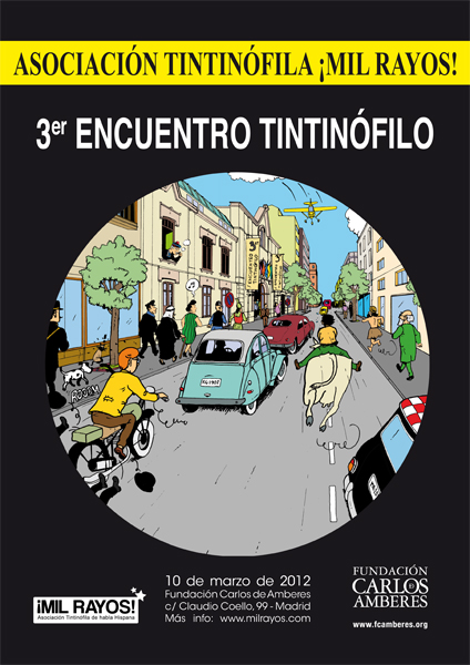 El 3er. Encuentro Tintinófilo, organizado por la Asociación ¡Mil Rayos!, tendrá lugar el sábado 10 de marzo de 2012 en la Fundación Carlos de Amberes (C/Claudio Coello, 99, Madrid).