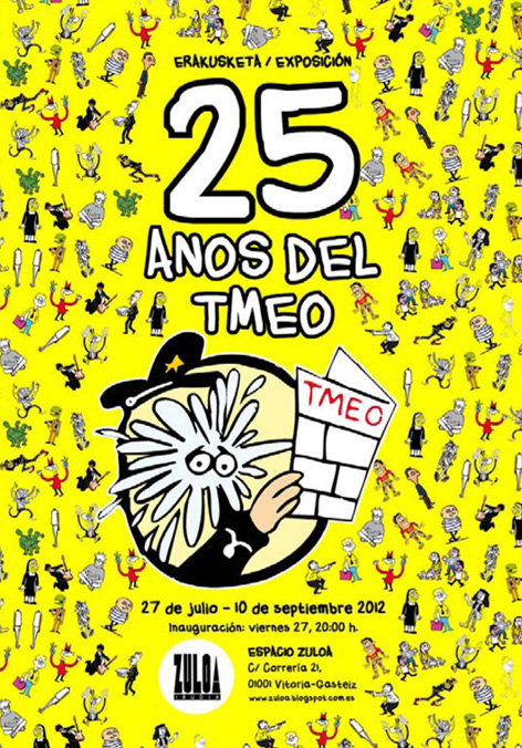 La revista TMEO está de celebración: acaban de cumplir 25 años. Jugando con la escatología –una temática muy en la línea de esta ácrata revista- y como una de las actividades pensadas para celebrar su onomástica desde este viernes 27 de julio y hasta el 10 de septiembre podemos ver en Zuloa Espacio (Correría 21, Vitoria-Gasteiz) la exposición titulada “25 anos del TMEO”. No hay error ortográfico: “25 anos del TMEO”.