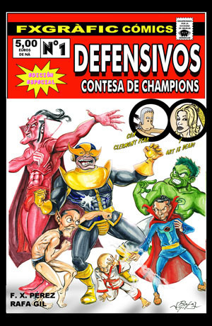 Ficha técnica Título: “Los Defensivos. Edición Especial. Nº 1”. Colección: “Container”. Se trata de tomos en formato “Biblioteca” que agrupan 3 cómics de FXgràfic. Algunos inéditos y otros son reediciones de “clásicos” de la editorial. Autores: Los Defensivos. Cómic inédito. Novedad absoluta largamente esperada: Guión: F. X. Pérez. Dibujo: Rafa Gil. En el pasado colaborador en la realización de dibujos animados para importantes productoras españolas. Art is Dead!: Guión y Dibujos: Rafa Gil. Las Ilusiones de Clermont Fear: Guión: F. X. Pérez. Dibujos: J. M. Beltrán (BEL) y Núria Trias. Editor: FXgràfic. F. X. Pérez Editor. E-mail editorial: fxgrafic@hotmail.com Web editorial: www.fxgrafic.com Formato del cómic: 15 cm. de ancho x 23 cm. de alto. Cubierta de calidad. Encuadernado con lomo. Número de páginas: 68 (sin contar cubiertas). Precio: 5 €. Presentación: FXgràfic, en su línea “FXgràfic Cómics”, ha editado desde 2002 diversos cómics de parodias de superhéroes. Todo este trabajo realizado durante todos estos años nos ha llevado a la creación de un “universo de personajes” absolutamente cohesionado. Además, todo este trabajo realizado nos ha llevado a “pulir” nuestro estilo y crear unas series con un humor propio y sugerente claramente diferenciado de otros productos del mismo estilo y mucho más transgresor y adulto. El nuevo cómic de “Los Defensivos” es la prueba de todo ello: ¡Es el cómic de parodias de superhéroes definitivo!¡Jamás os reiréis tanto con este género como leyendo “Los Defensivos”! Cuando dos equipos de “héroes” liderados, respectivamente, por Zanos y Mefristo compiten para conseguir un objeto mágico de gran poder todo puede pasar...¡No os perdáis al Doctor Raro, Estela Ennatada y Thoro contra Nemor, Pulk y la Viuda Alegre!¡Es algo así como el “contest of champions” definitivo! Este tebeo está repleto de guiños a películas, a otros cómics y a la actualidad social siguiendo el estilo de películas como “Scary Movie”...No os defraudará. FXgràfic ha creado la nueva colección “Container” que agrupa 3 cómics o más en un tomo. “Los Defensivos. Edición Especial” va acompañado de dos clásicos de la editorial realizados por los mismos autores: “Las Ilusiones de Clermont Fear” (thriller psicológico) de F. X. Pérez y “Art is Dead!” (humor satírico) de Rafa Gil. [Nota de prensa ] | |||